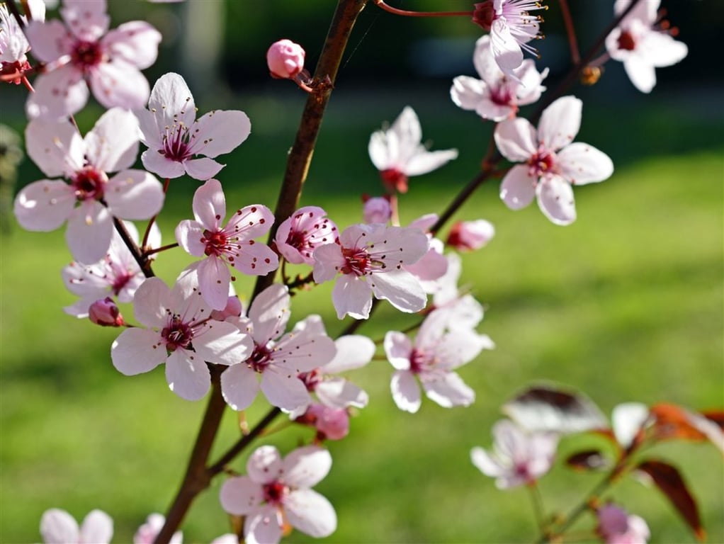 Met zijn stijlvolle, enkele, zachtroze bloemen tegen de nog bronsgroene bladeren vormt de dakprunus een aanblik van finesse en elegantie. In Japan heeft de kersenbloesem in het voorjaar mythische proporties bereikt, waarbij de weerman in het weerbericht voorspelt op welke dag de kersenbomen gaan bloeien en het hele land in rep en roer is als de voorspelling niet uitkomt. Als u de dakprunus in uw tuin plaatst, zult u deze Japanse obsessie voor prunussen beter begrijpen. Zoveel zuivere schoonheid in een enkele boom is zeldzaam. Na de bloei is het nog niet gedaan met de sierwaarde van de dakprunus. U kunt dan nog de hele zomer en herfst genieten van de elegante eivormige, rode bladeren die een mooie, beschermende schaduw vormen waaronder het ook in de brandende zomerzon heerlijk toeven is.