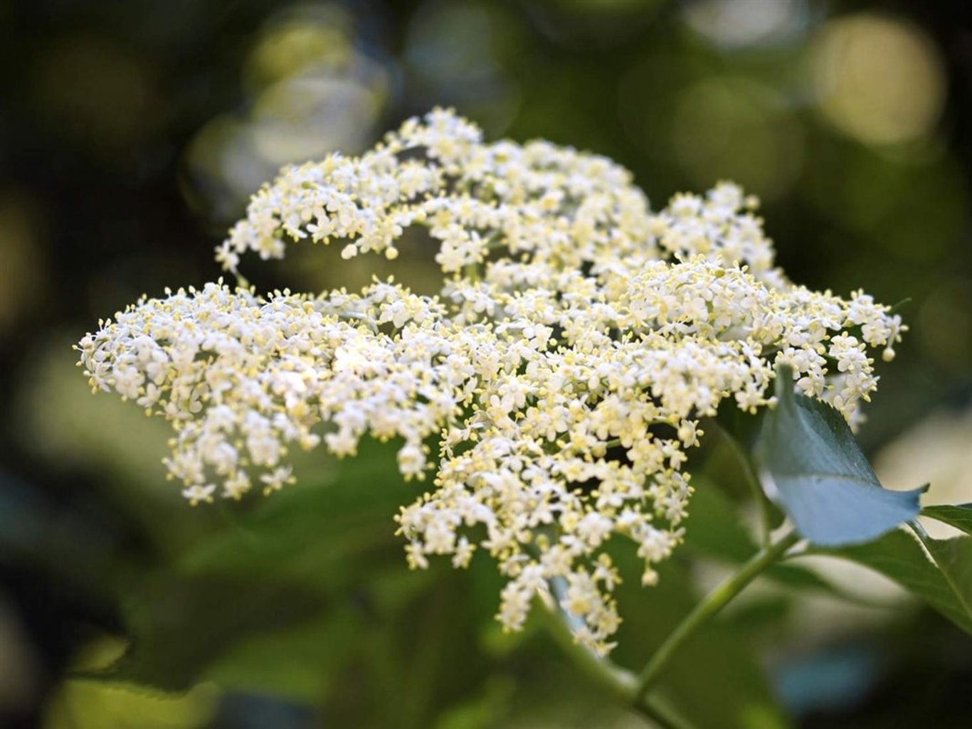 In het voorjaar en de vroege zomer verschijnen er grote, schermvormige bloeiwijzen met delicate, crèmekleurige bloemen. Deze bloemen hebben een heerlijke, subtiele geur en trekken bijen en andere bestuivers aan.