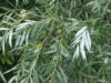 Het smalle, lancetvormige blad van de Salix alba heeft een kenmerkende zilvergrijze tot witachtige onderkant. De Gewone Wilg bloeit in het voorjaar, meestal rond april, met geelgroene katjes.
