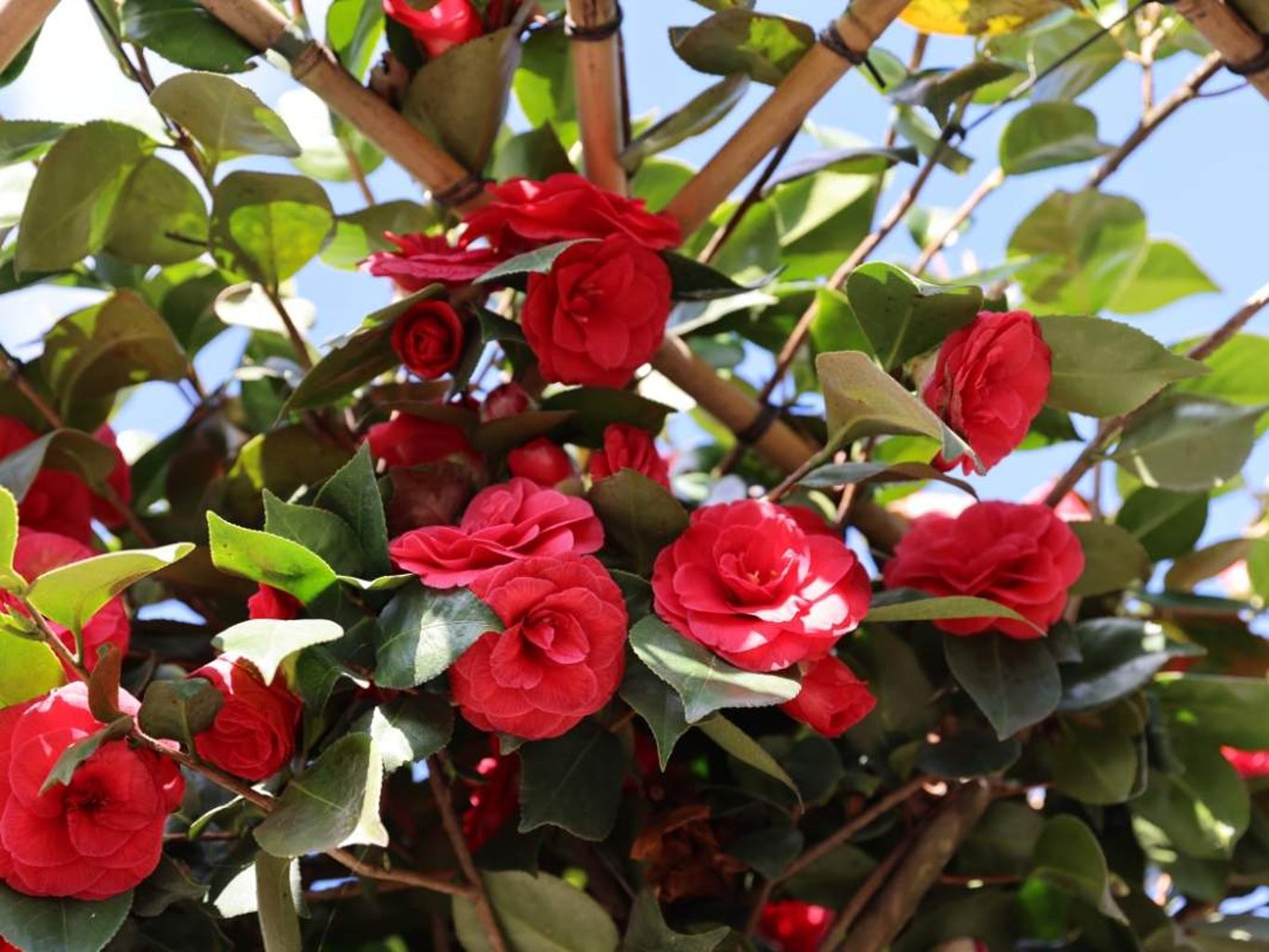 Camellia japonica meerstammig is een groenblijvende meerstammige boom, ook wel Japanse camellia genoemd. Het is een groenblijvende boom waarvan de bladeren donkergroen en glanzend zijn. De boom bloeit in het vroege voorjaar, rond februari tot mei, en is populair vanwege zijn felroze tot lichtrode bloemen die op rozen lijken. Een geweldige blikvanger!