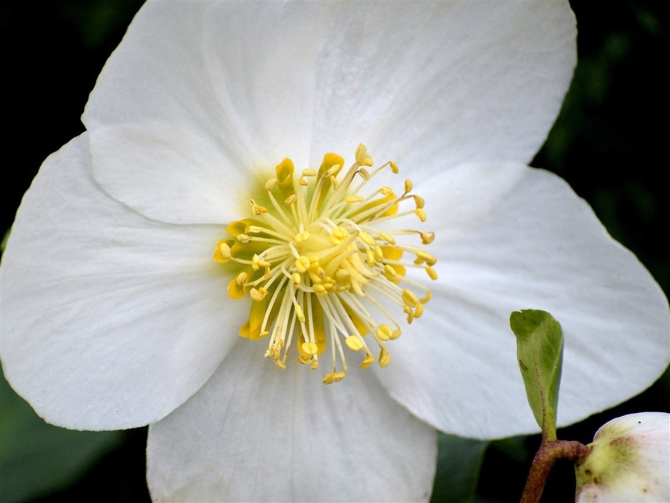 De Helleborus is een wintergroene plant. En bloeit al heel vroeg. Begint vaak al in januari. Kan zelfs al wel eens in december. Vandaar de naam Kerstroos. Er komen witte bloemen in. En kan niet tegen al te natte grond. Maar kan wel tegen strenge vorst.