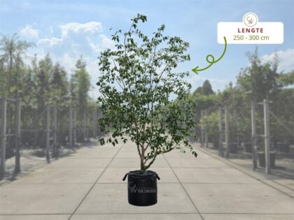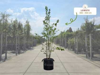 Een meerstammige boom vraagt weinig onderhoud, maar regelmatige controle en lichte snoei houden de boom gezond en mooi in vorm. Snoei bij voorkeur in de winter of het vroege voorjaar, als de boom in rust is. Verwijder dode takken en takken die elkaar kruisen om een open kroonstructuur te behouden. Laat de natuurlijke, losse vorm zoveel mogelijk intact — dat is juist de kracht van deze boomvorm. Zeker in de eerste jaren kan een lichte vormsnoei bijdragen aan een goede basisstructuur voor de toekomst.