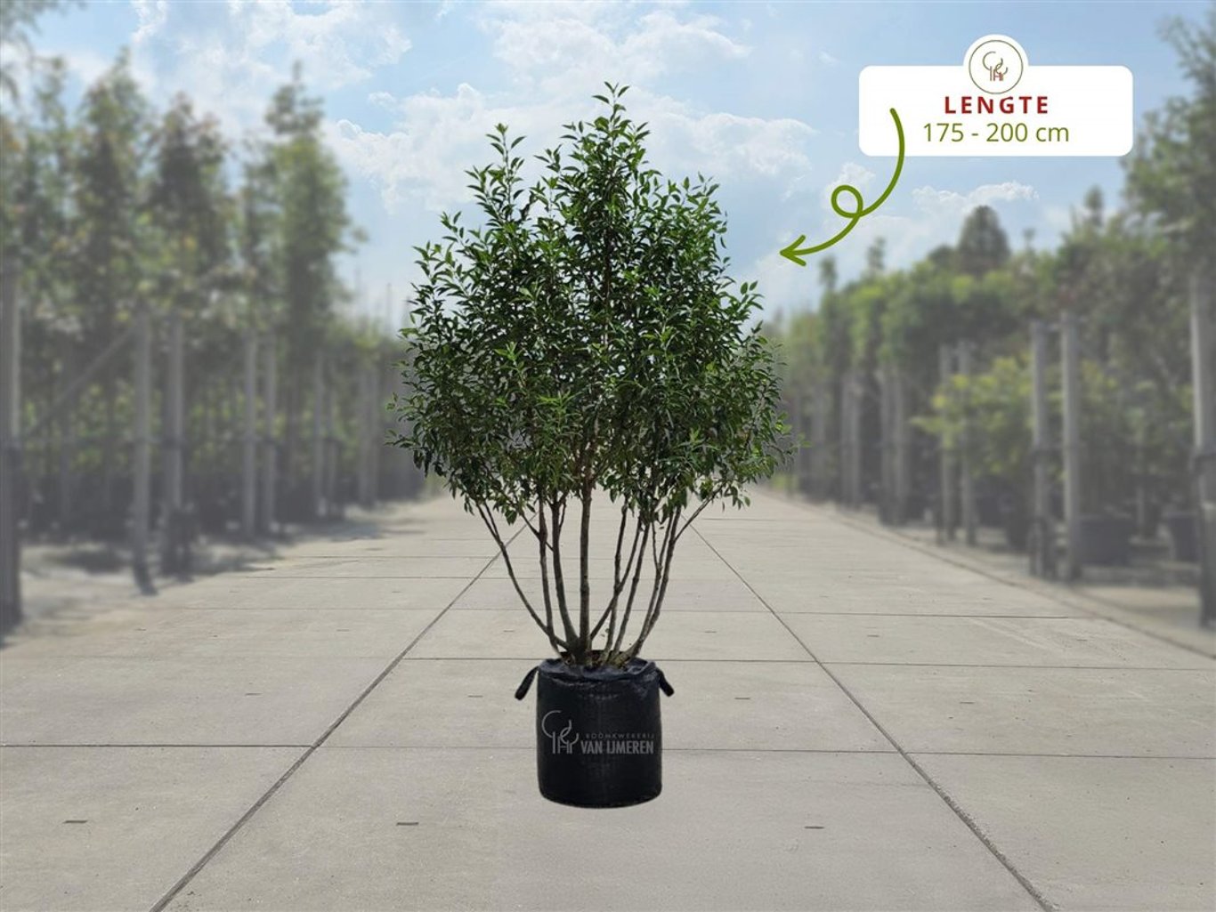 De Prunus lusitanica ‘Angustifolia’ Meerstammig, ook wel de Portugese laurierkers genoemd. Hij heeft smallere, langwerpige bladeren. Deze zijn glanzend donkergroen en blijven het hele jaar aan de boom zitten. De Prunus lusitanica ‘Angustifolia’ is een sterke, langzaam groeiende plant die het goed doet op zon tot halfschaduw. Hij verdraagt droogte en wind goed, zolang de grond maar goed doorlatend is.