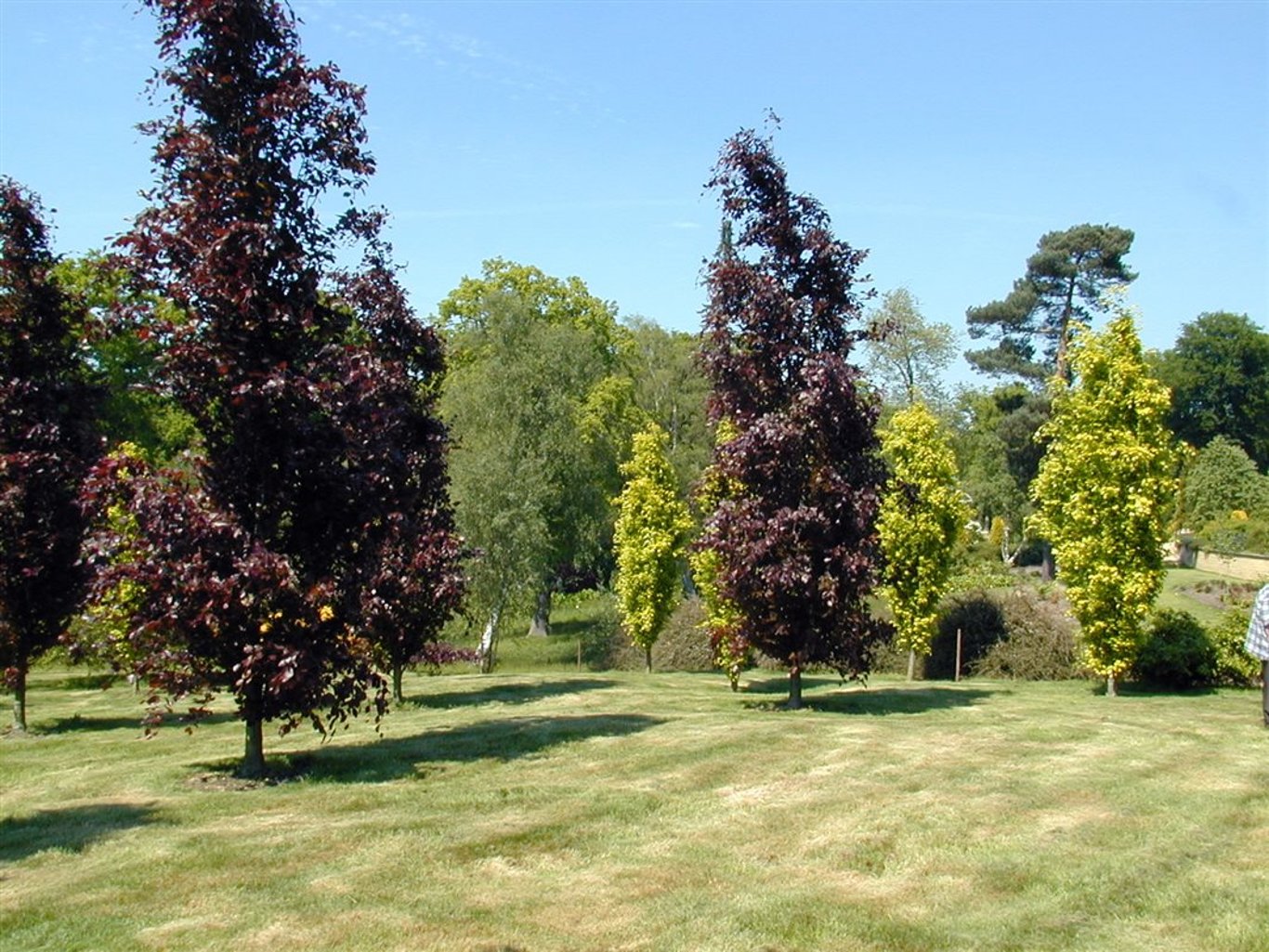 De Fagus sylvatica ‘Dawyck Purple’ is een erg mooie roodbladige zuilbeuk. Het is een smalle boom. In de herfst krijgt hij kleine nootjes. Hij doet het goed op niet te natte grond.