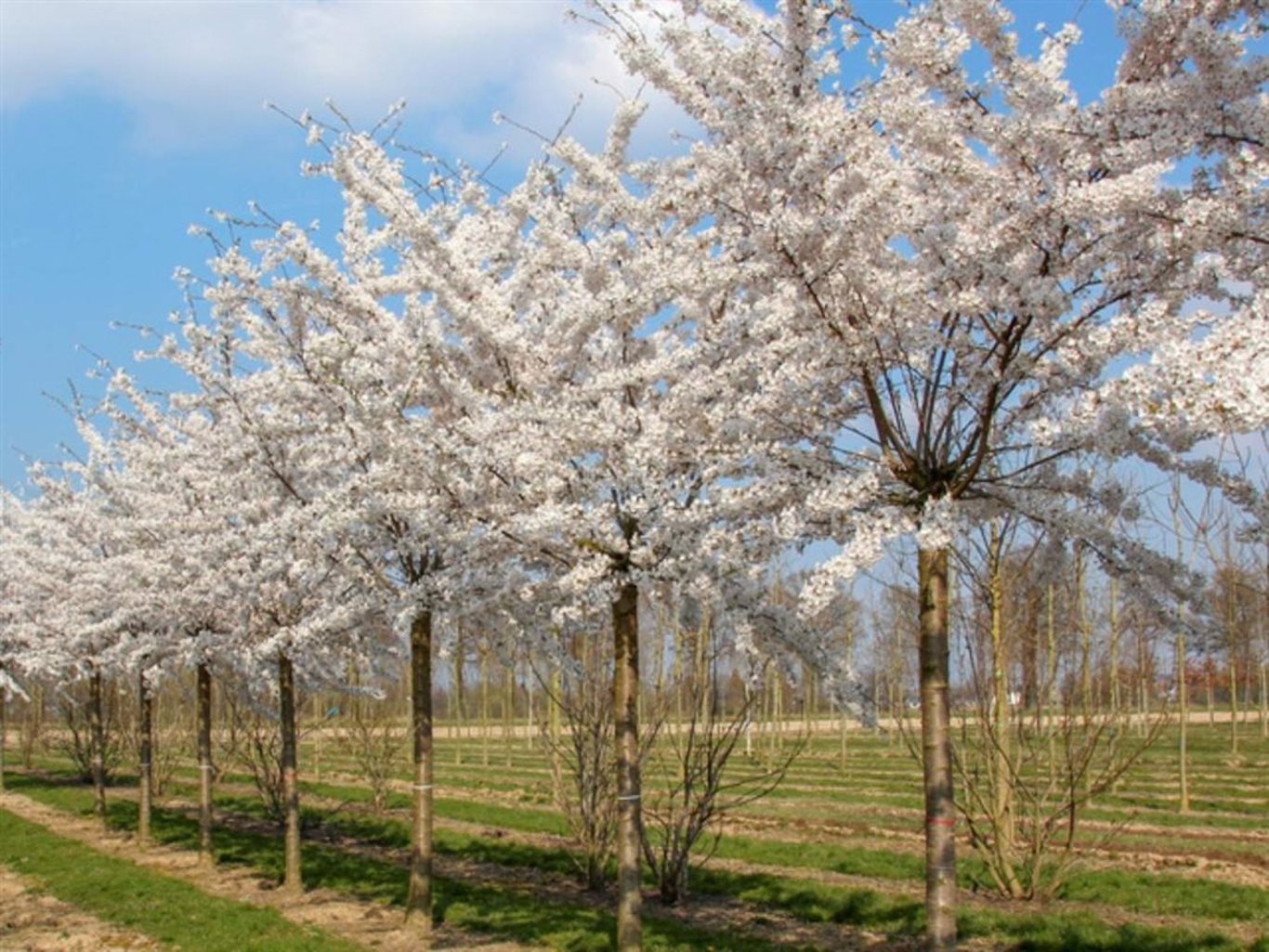 De Prunus Yedoensis is een mooie sierkers met lichtroze knoppen en daarna witte bloesem. De boom bloeit rijkelijk. Kan tegen alle grondsoorten, alleen niet te natte grond.