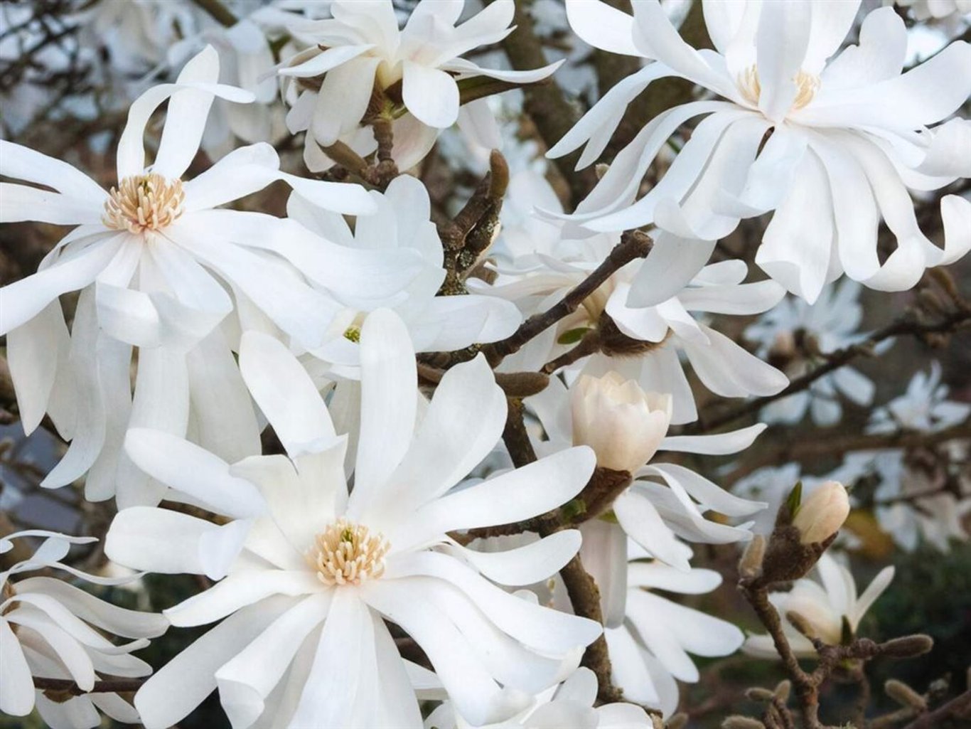 De Stermagnolia is een redelijk kleine boom. Deze Royal Star lijkt veel op de Magnolia stellata, maar de bloemen zijn wat groter. Het zijn wat openvallende bloemen in wit – zilverachtig. In iedere bloem zitten heel veel bloemblaadjes, waardoor de boom echt helemaal gevuld is met bloemen. Het zijn echte blikvangers in uw tuin, in het voorjaar.