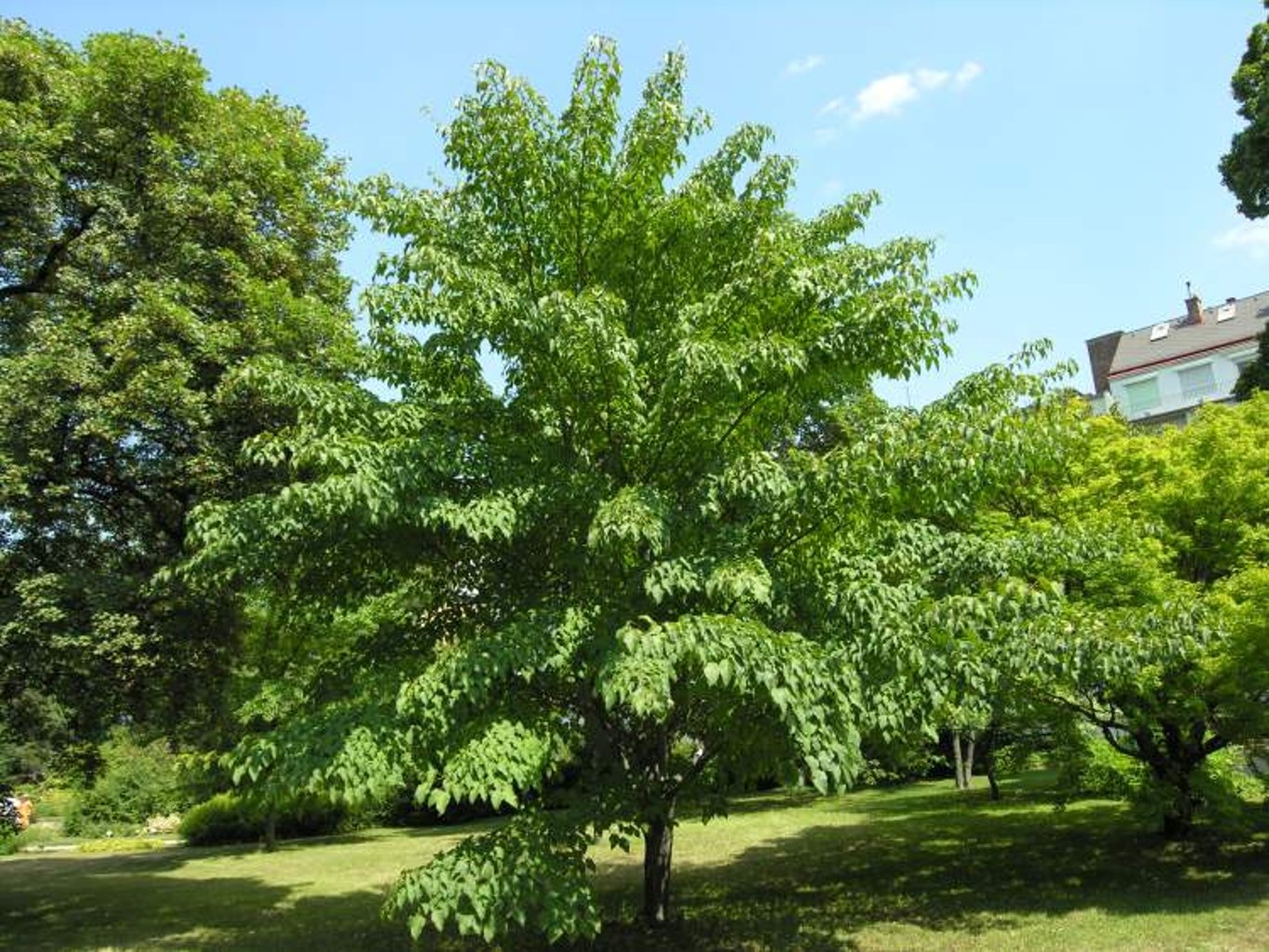 Een bladverliezende boom tot 15-20 meter in het wild. Schors is donkergroen met bleekgrijze lengtestrepen, wordt bleekbruin en ondiep gespleten met de leeftijd. Takjes zijn kaal, paarsachtig rood tot groen, glaucous of niet, sterk gestreept wit. Knoppen zijn gestippeld, eivormig, met 2 paar klepschalen, groen tot rood. Bladeren chartaceous, vijfhoekig in omtrek, basis hartvormig tot afgerond, 3 tot en met 5 gelobd, 8-15 × 7-12 cm, lobben zijn ovaal, de centrale lob is lang, laterale lobben naar voren wijzend, basale lobben afwezig of obscuur, top lang toegespitst, randen onregelmatig dubbel gezaagd, bovenzijde donkergroen, onderzijde bleker, aanvankelijk roodachtig tot roestig behaard, spoedig kaal, met kleine, prominente vliezen in promart oksels; bladsteel 3-8 cm lang, rood, gegroefd; herfstkleuren geel tot diep rood. Komt zelden voor in de teelt. Aantrekkelijke kleine boom of grote struik voor in het landschap. Problemen? Geen ernstige insecten- of ziekteproblemen. Mogelijke ziekteproblemen zijn onder meer verticilliumverwelking, bladvlekken, teervlekken en wortelrot. Mogelijke problemen met insecten zijn onder meer bladluizen, schaal, boorders en rupsen. Er kunnen mijten verschijnen.