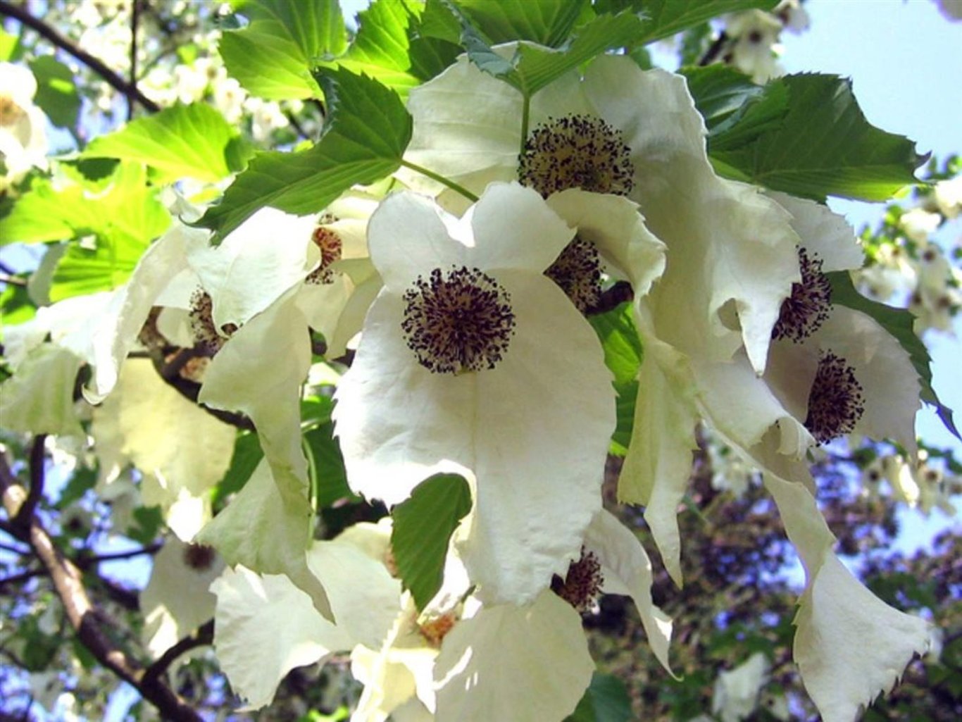 De Davidia involucrata is een mooie witbloeiende boom. De naam heeft hij te danken aan de bloemen die op zakdoekjes lijken. Het zijn roomwitte schutbladeren en hangen naar beneden met daar tussenin een bloemknop. Echt een aparte mooie verschijning. Het blad is frisgroen. De Zakdoekenboom heeft vruchtbare grond nodig.